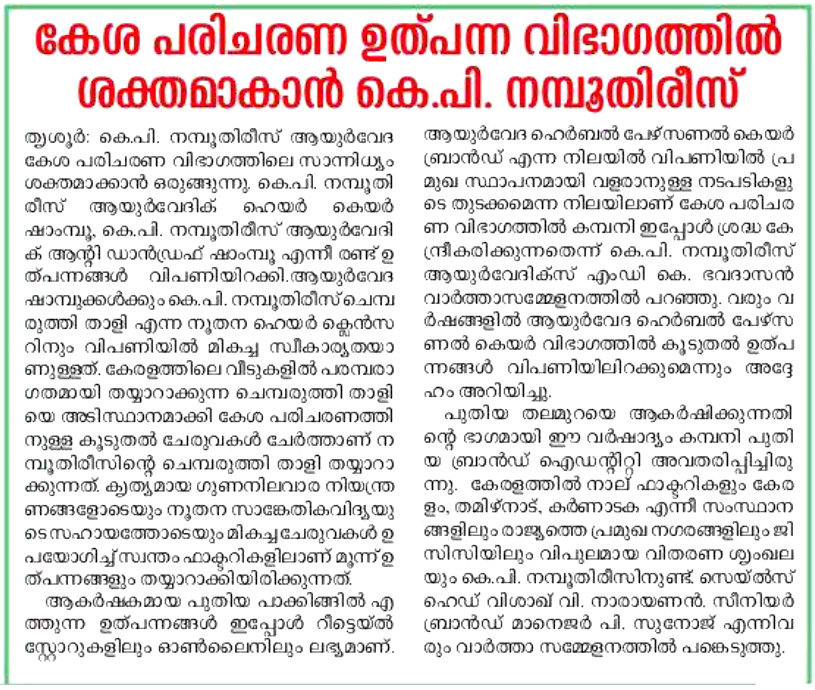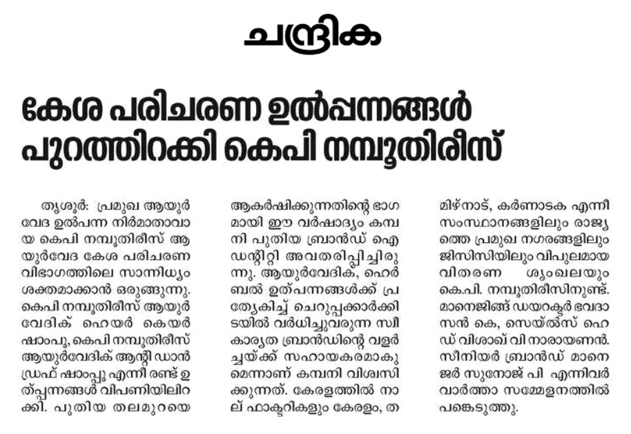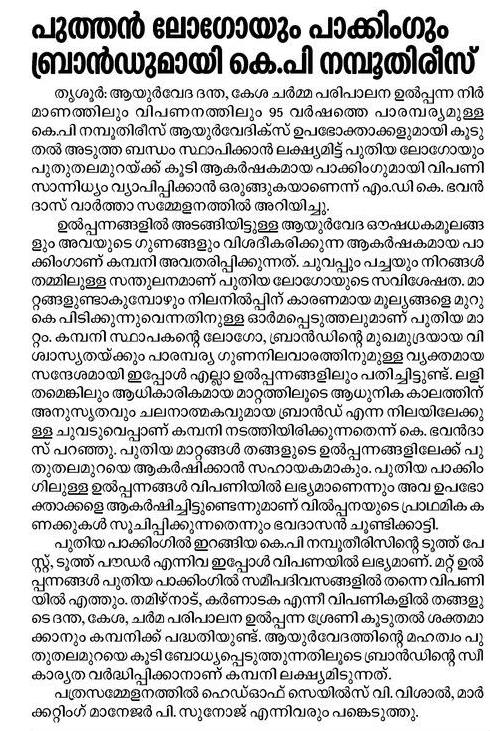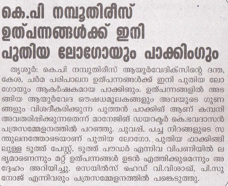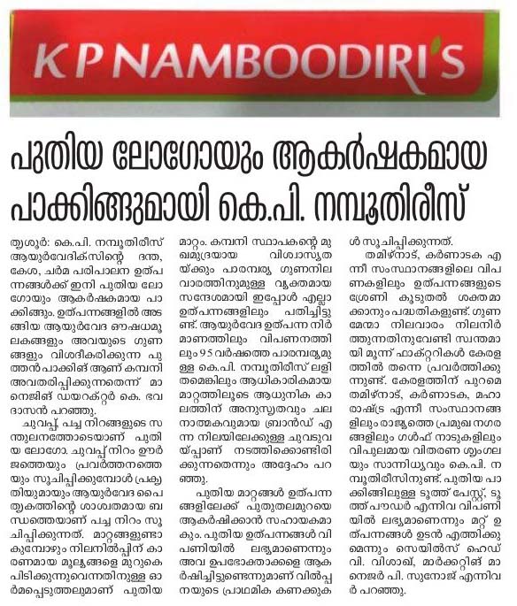 K P Namboodiri's Ayurvedics announced its rebranding initiative in 2021. The objective was to update the brand identity to make it more contemporary and improve brand visibility on the shelf, while retaining the existing red and green colours.